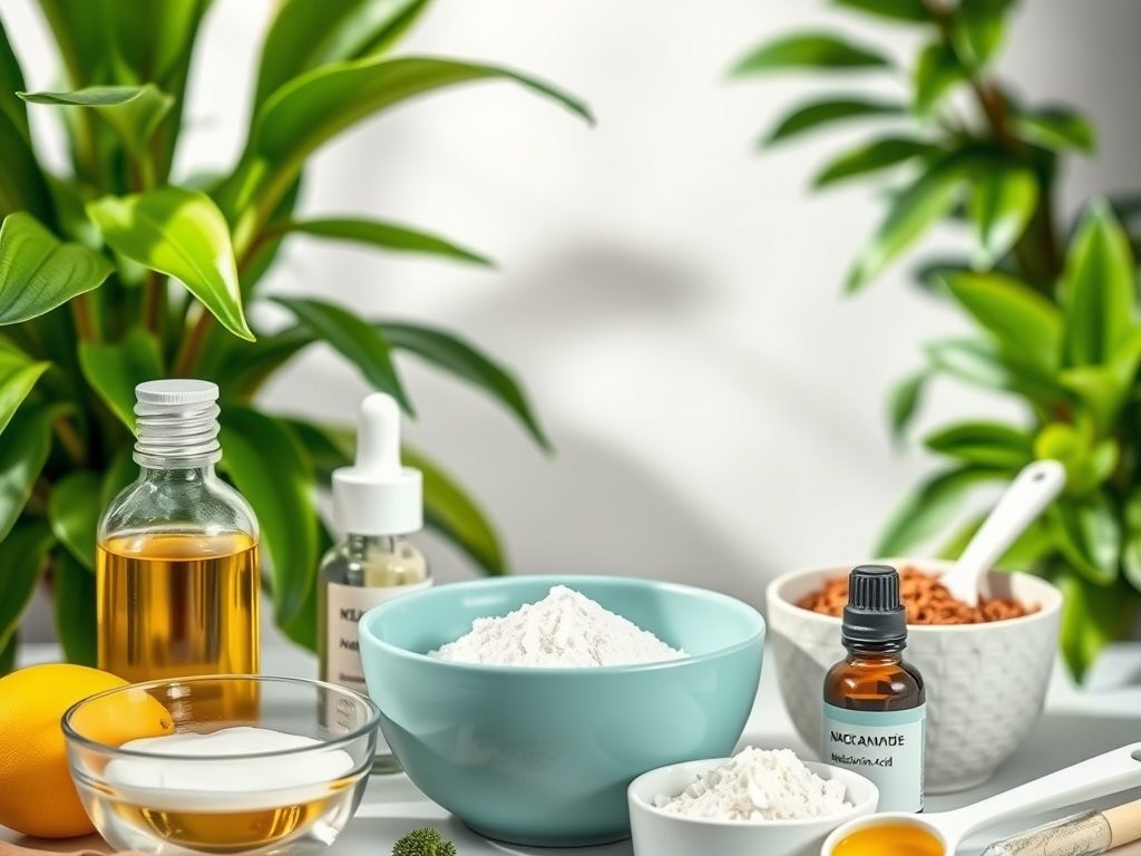 - Serum do twarzy z niacynamidem: Wymieszaj 2-3% niacynamidu w wodzie destylowanej z odrobiną kwasu hialuronowego, aby zapewnić głębokie nawilżenie.